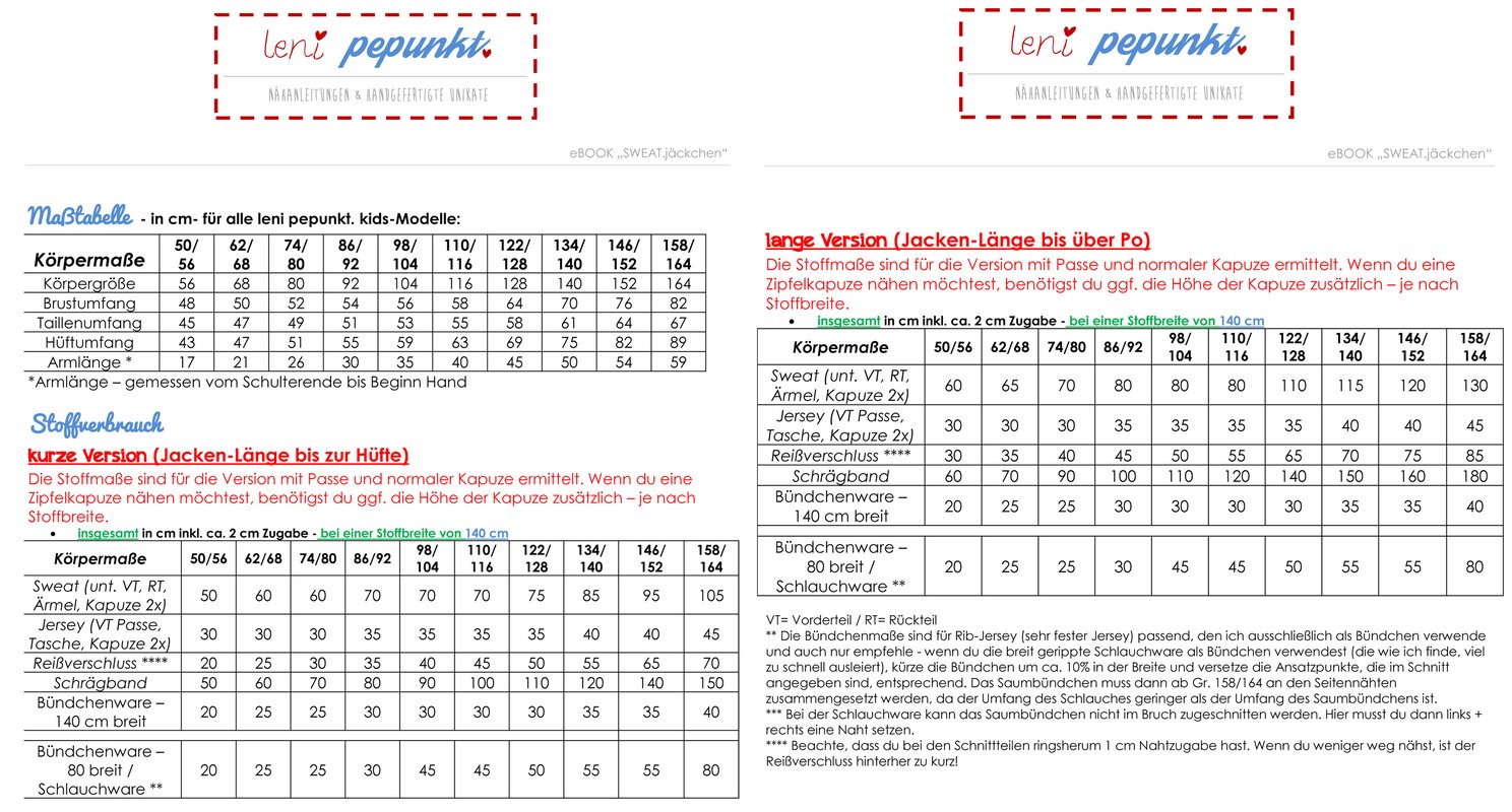 Das eBOOK enthält die Schnitte für die Größen 50/56 - 158/164, sowie Fotos zu jedem Arbeitsschritt - hier sind auch Nähanfängerinnen bestens mit beraten!