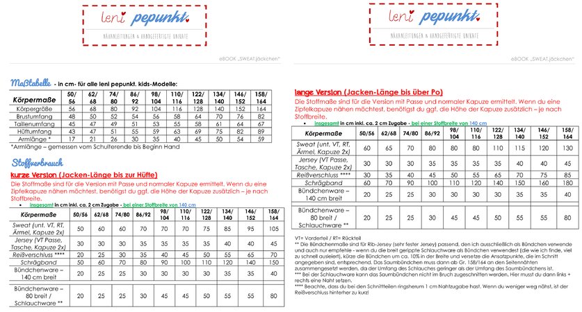 Wie bei allen "leni pepunkt" kids-Schnitten sind auch hier alle Größen von 50/56 - 158/164 beinhaltet!