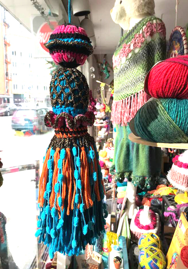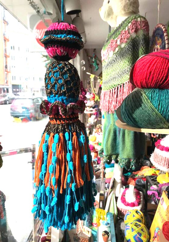 Hier kann ich auch mal die alte, türkise Bommelwolle benutzen!