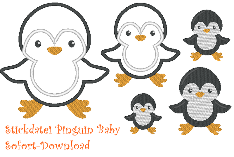 ♥ Stickdatei Pinguin Baby in verschiedenen Größen, für Stoff Applikationen und gefüllt ♥