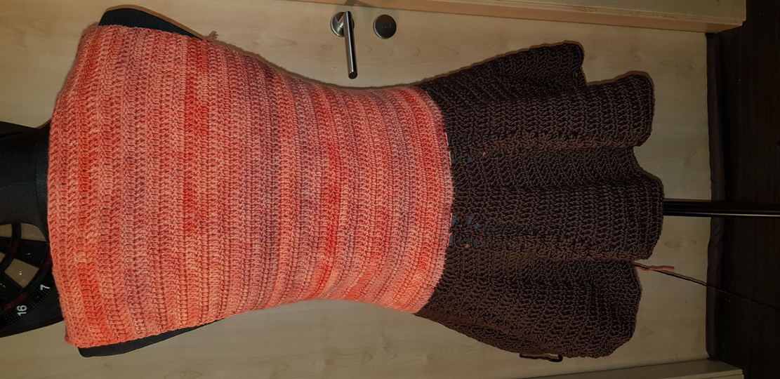 Bei Grösse 44 bräuchte man ca. 4 knäuel für den Oberteil und ca. 5-6 Knäuel für das Schöschen mehr. Da kommt es dann aber darauf an, wie lange du das Schöschen machen möchtest