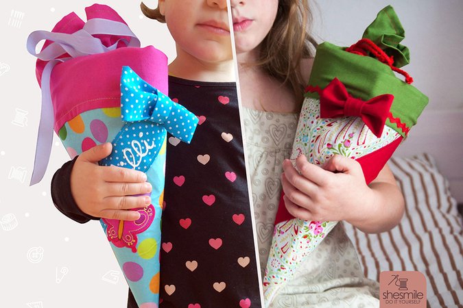 Hashtags: #schultüteausstoff #zuckertüte #geschwistertüte #diyshesmile
