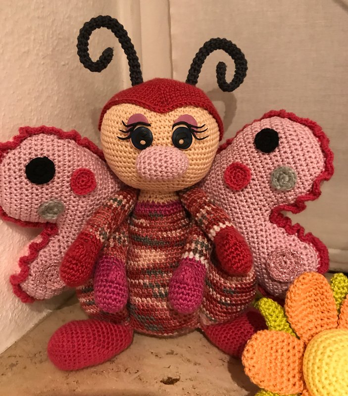 Mit dieser Häkelanleitung kannst Du den Schmetterling Schinya, Schritt für Schritt nachhäkeln.