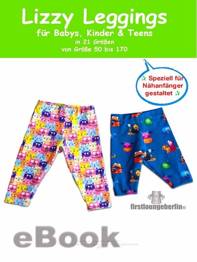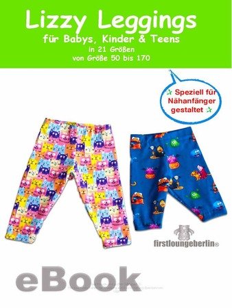 LIZZY ♡ eBook ausführliche Nähanleitung mit Schnittmuster Baby Kinder Teens Leggings in 21 Einzelgrößen von Größe 50 bis 170. Für Babys ist genug Platz für die Windel. Mit Tipps zum Kürzen und Verlängern und noch Extratipps für andere Längen wie 3/4 oder 7/8 Leggings und kürzer. ♡