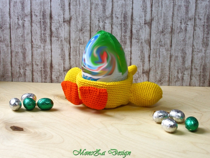 Einen extra großer Eierbecher oder ein ausgefallenes Osterkörbchen für kleine Osterleckereienkannst Du Dir mit dieser Anleitung häkeln.