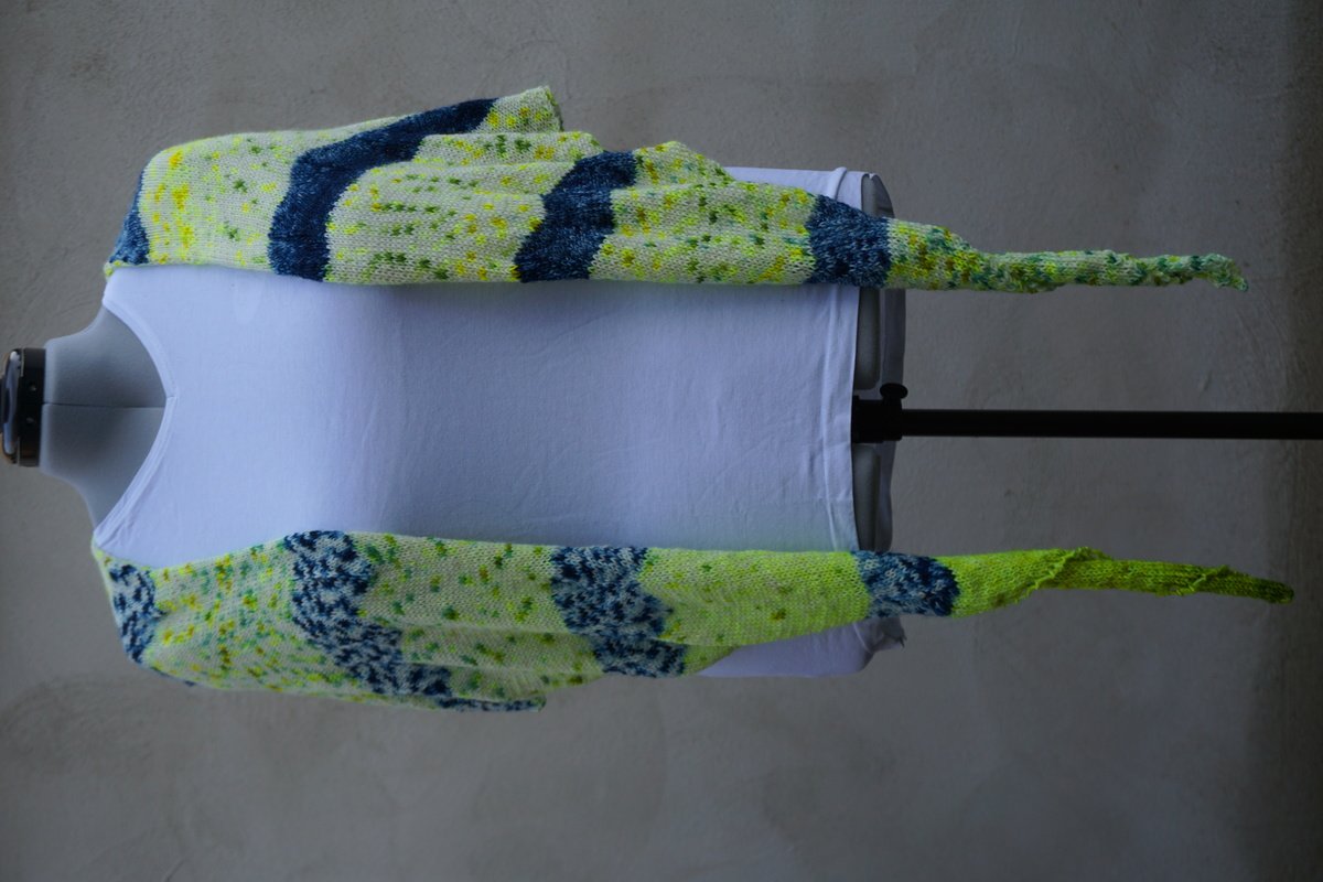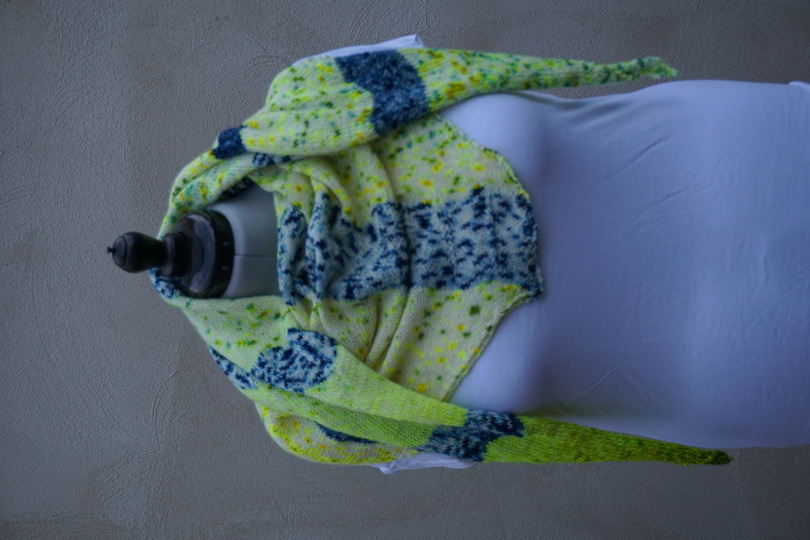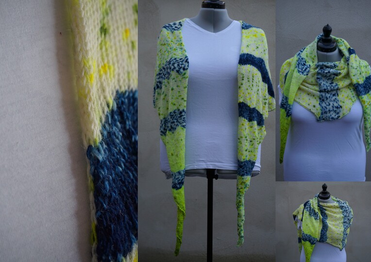 Zudem eignet sich das Tuch auch zur Resteverwertung, wenn die einzelnen Sektionen in unterschiedlichen Farben gestrickt werden.