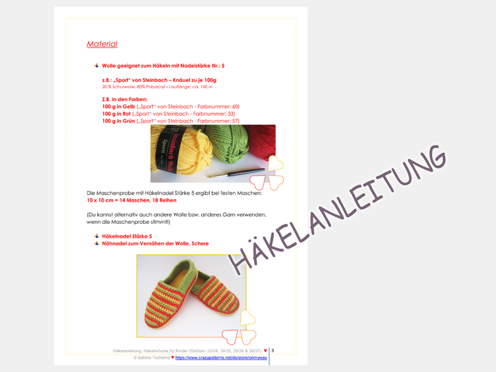 ♥ Häkelanleitung für Hausschuhe in den 4 Größen: 33/34, 34/35, 35/36 und 36/37