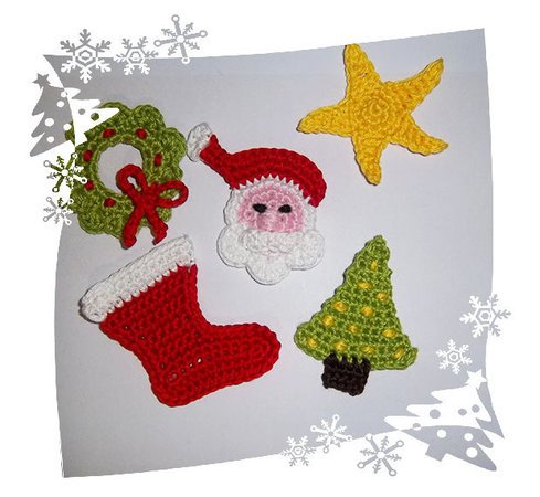 Zauberhafte, gehäkelte Weihnachtsapplikationen die man sehr schön weiterverarbeiten kann, wofür auch immer. Du kannst sie auf Deckchen oder Servietten oder Kleidung oder Kissen oder Accessoires oder …….. nähen. Vielleicht möchtest Du sie auch als kleine Geschenkanhänger nutzen. Sehr schön macht sich solche eine Weihnachtsapplikation auch auf einer selbst gebastelten Kart…… ich glaube da gibt es sooo viele Möglichkeiten, die kann ich gar nicht alle aufzählen ;o) Auf jeden Fall kannst Du Deiner Kreativität zur Weiterverarbeitung freien Lauf lassen.