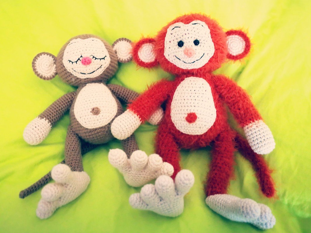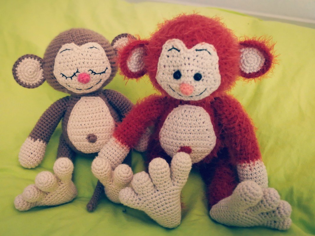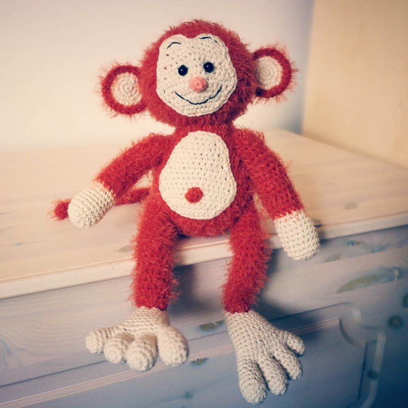 Je nach verwendeter Wolle werden diese Affchen ca. 30-40 cm groß, haben somit eine perfekte Größe zum schmusen und Spielen.