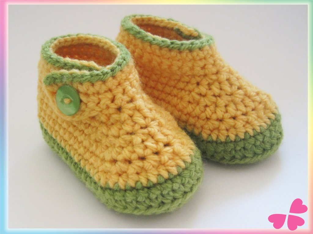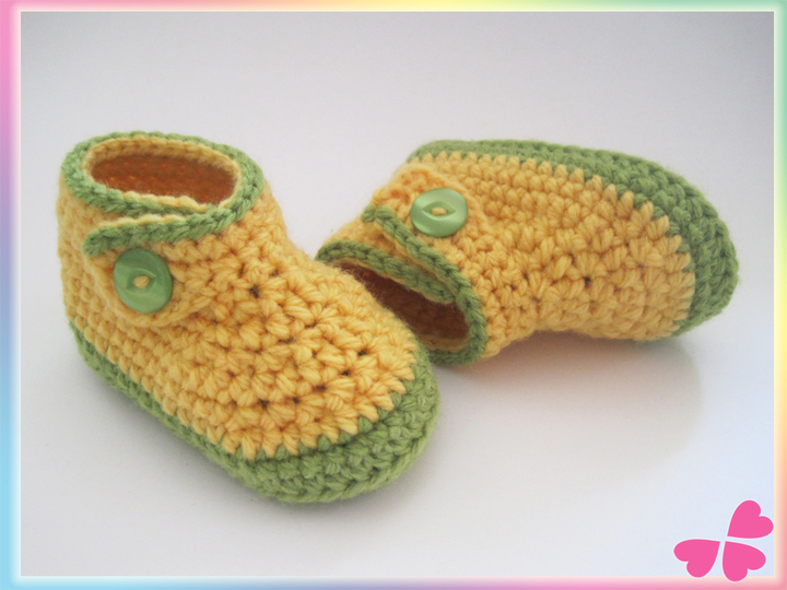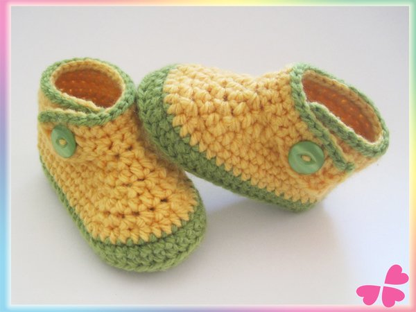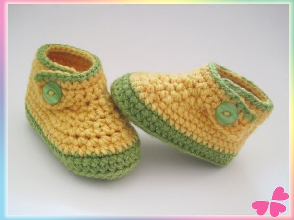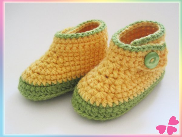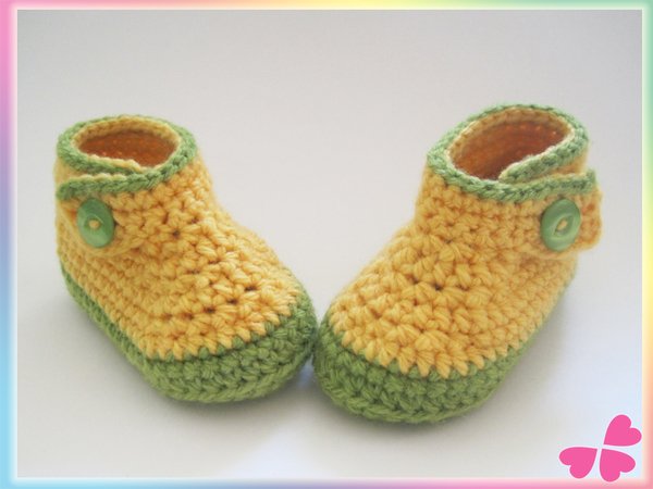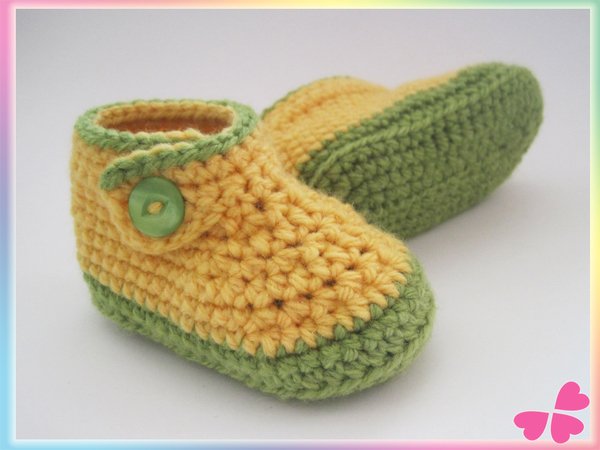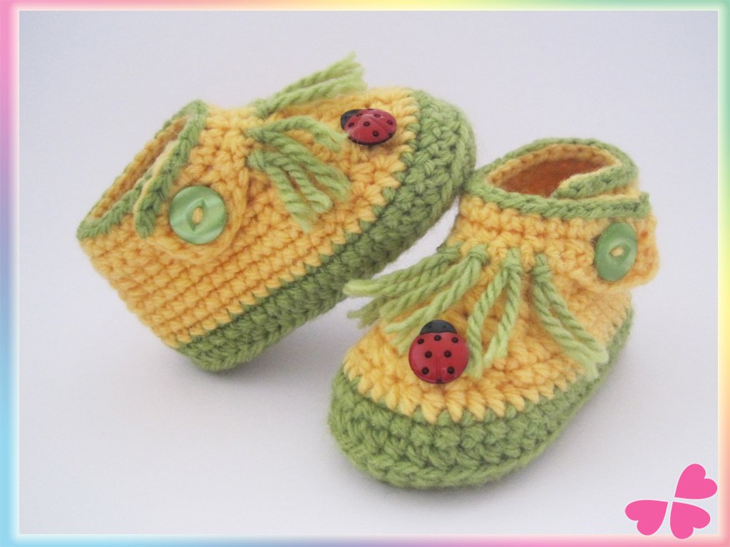 Häkelschuhe für Kinder: Marienkäfer im Gras!