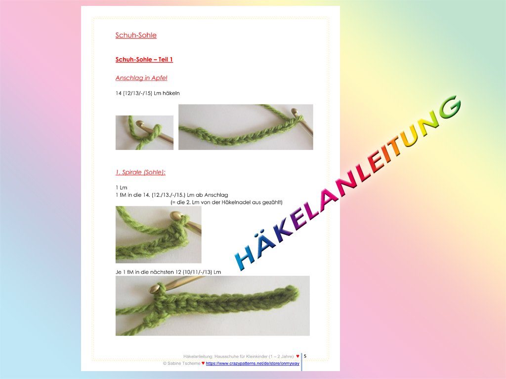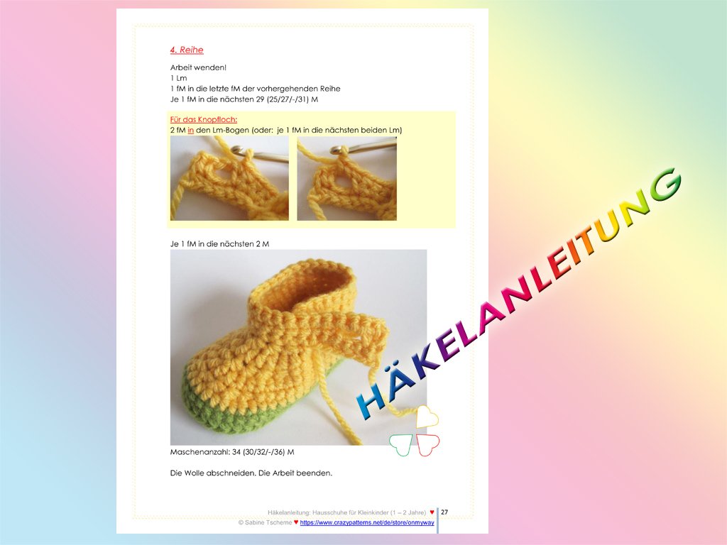 ♥ Häkelanleitung für Hausschuhe in 4 Größen: