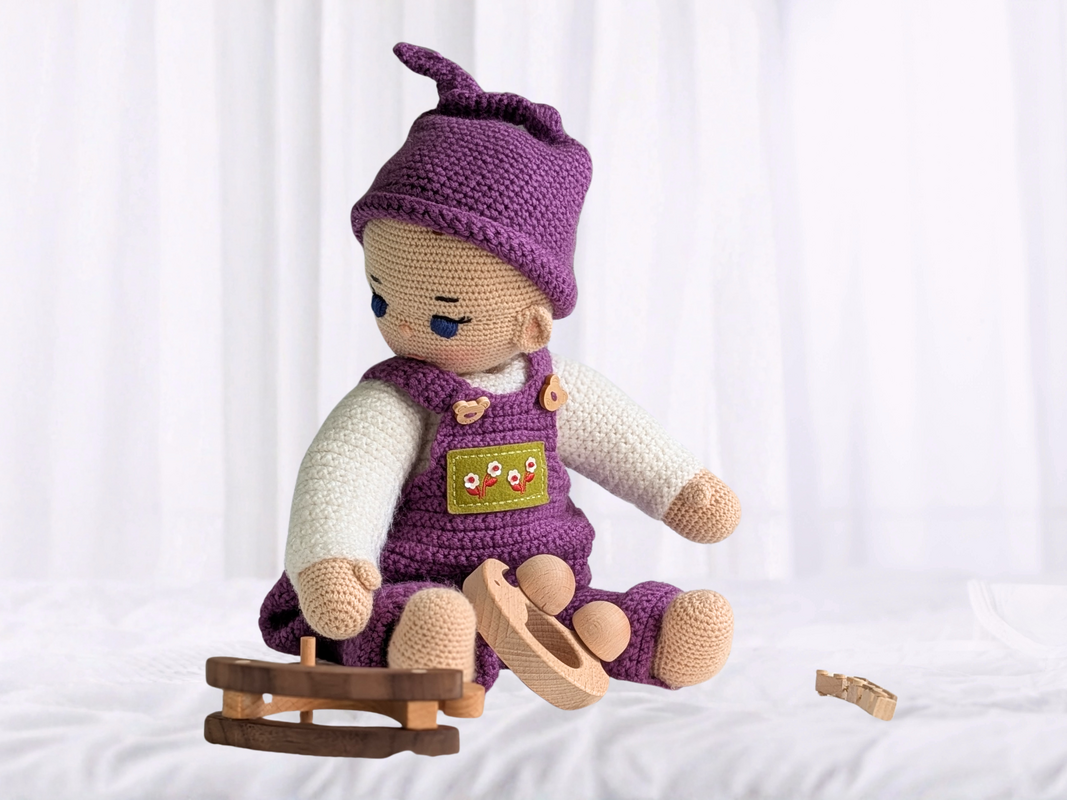 Du willst eine Puppe häkeln, die nicht nur süß aussieht, sondern auch schnell zum neuen Lieblingsspielzeug wird? Dann ist Alani genau das Richtige für dich! Die 36 cm große Babypuppe trägt eine niedliche Latzhose und eine Zipfelmütze – und ist ideal für kleine Kinderhände gemacht.
