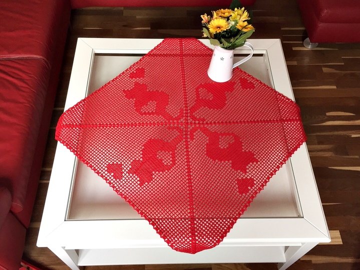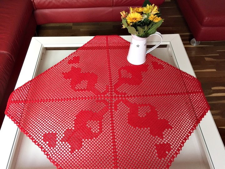 Die Anleitung beinhaltet nicht nur das klar verständliche Zählmuster, sondern auch eine bebilderte und in Worten beschriebene Kurzeinführung in das Filethäkeln von Mitteldecken!
