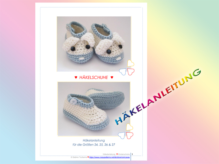 Die Häkelanleitung ist für die Größen 24, 25, 26 und 27 (= ca. 2 bis 4 Jahre) geschrieben.