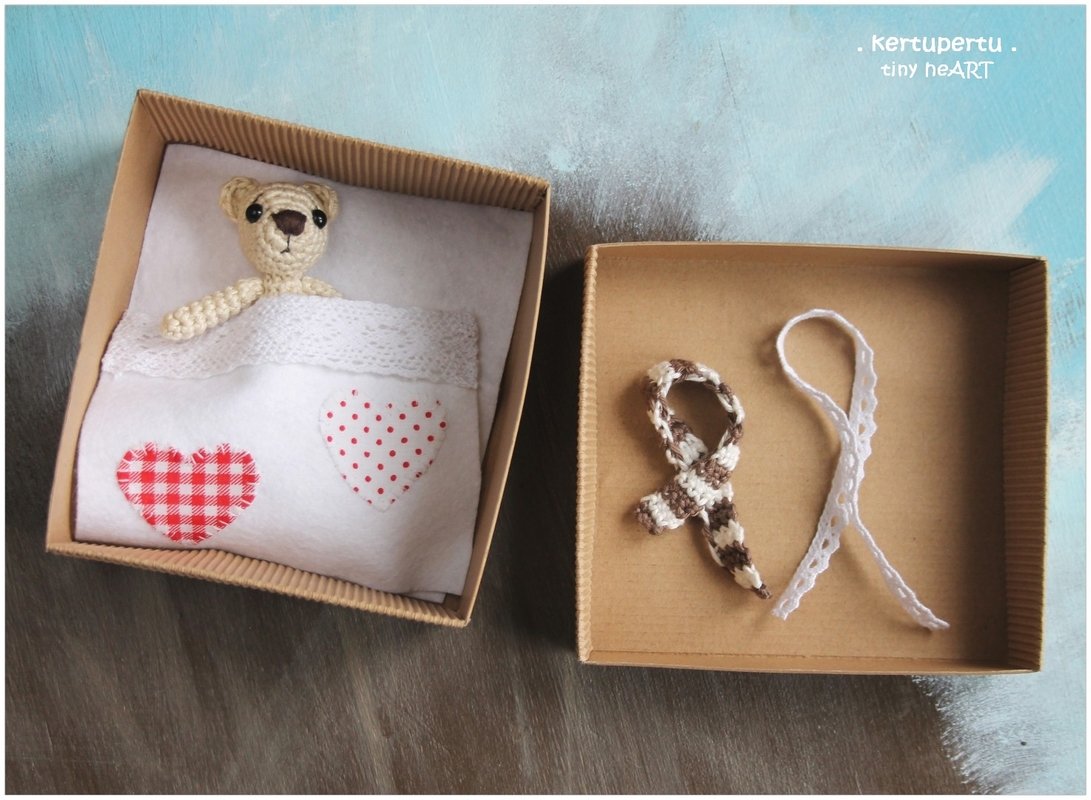 Das Bärchen ist bestens zum Kuscheln geeignet und einfach ein ganz indivuduelles Geschenk. Du kannst jemandem ein tolles Geschenk machen - aus Geschenkverpackung ein Bettchen für das Bärchen basteln (die Anleitung ist auch dabei). Eine Bärenbrosche ist auch eine tolle Idee - Du brauchst nur einfach eine Broschennadel annähen. Wie man einen Bärenschal häkeln kann, erfährst Du auch von dieser Anleitung.