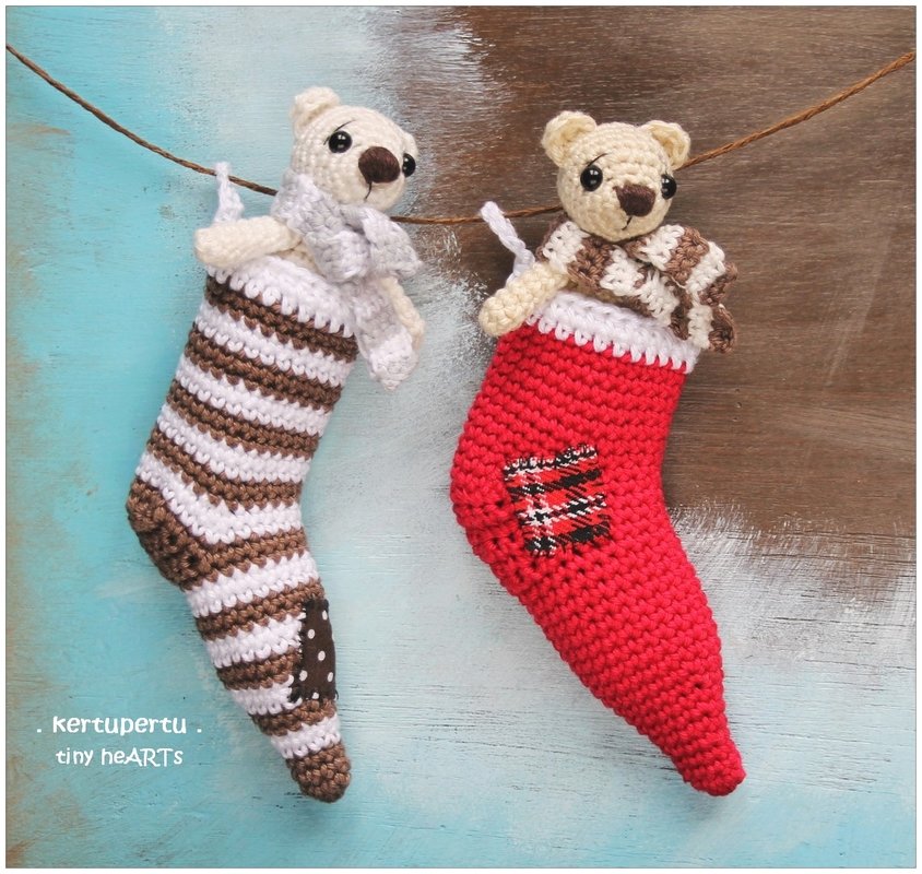 Die Bärchen und Socken sind von naturaler Baumwollegarn, kleinen liebevollen Detailien und einer extra Portion Liebe gemacht - aber für Dein Häkelprojekt kannst Du jedes Garn verwenden, das Du gern magst - Bärchen / Socke wird ein bisschen größer oder ein bisschen kleiner, bleibt aber immer gleich niedlich!