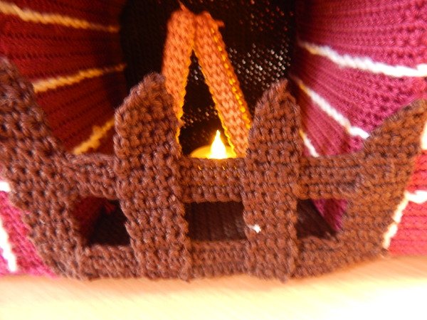 Der Kamin hat eine Größe von ca 50 cm, bei in der Anleitung verwendetem Garn und Nadelstärke