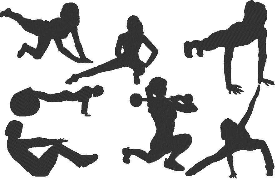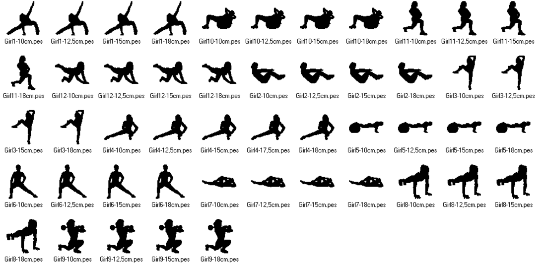 Stickdateiserie mit 12 verschiedenen Girls beim Sport in je 4 Größen