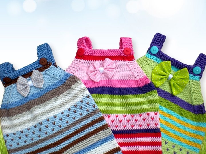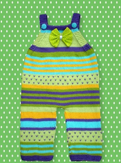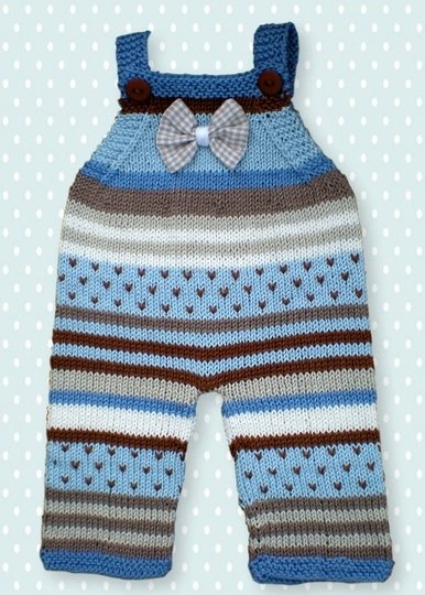Diese Latzhosen sind aus Baumwolle gestrickt und daher ideal für Frühling und Sommer. Mit dem abwechslungsreichen Muster geht die Arbeit schnell von der Hand.