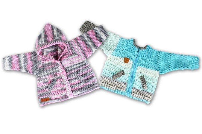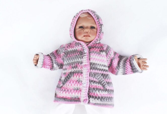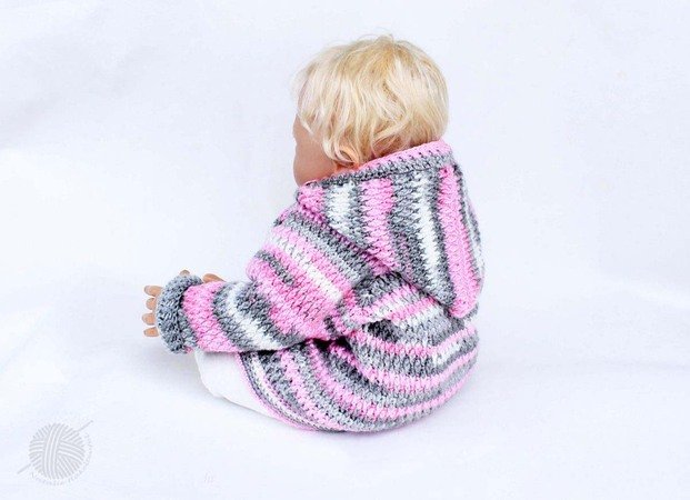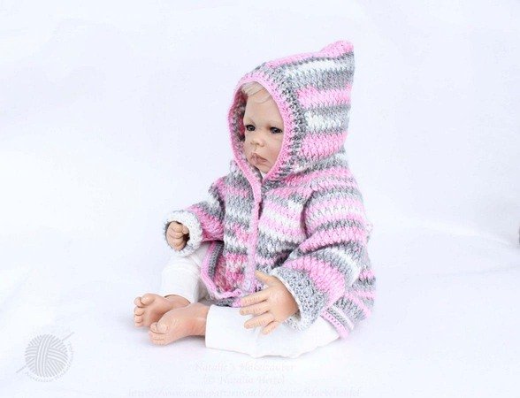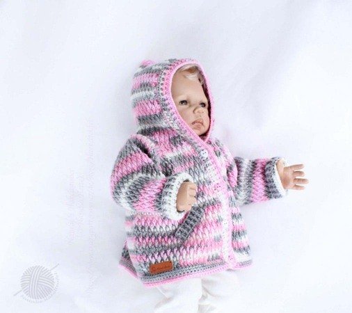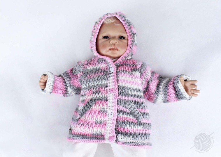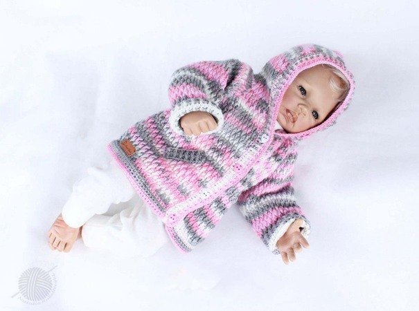 Diese PDF-Häkelanleitung besteht aus bebilderter Anleitung zum Häkeln von Baby- und Kinderjacken für Gr. 56-122 (1 M. bis 4-5-jähriges Kind) mit Kapuze oder ohne, mantelartig oder sportlich. Diese Jacken werden als ein Teil gehäkelt (Raglan von oben) und haben keine Nähte. Sie wurden mit einem ausgeprägten Reliefmuster gehäkelt. Die Taschen sind eine Imitation. Ein tolles Kleidungsstück für bequemes Tragen!