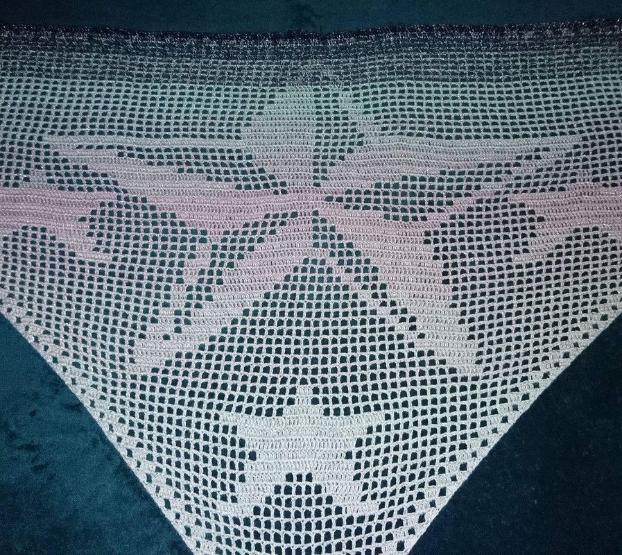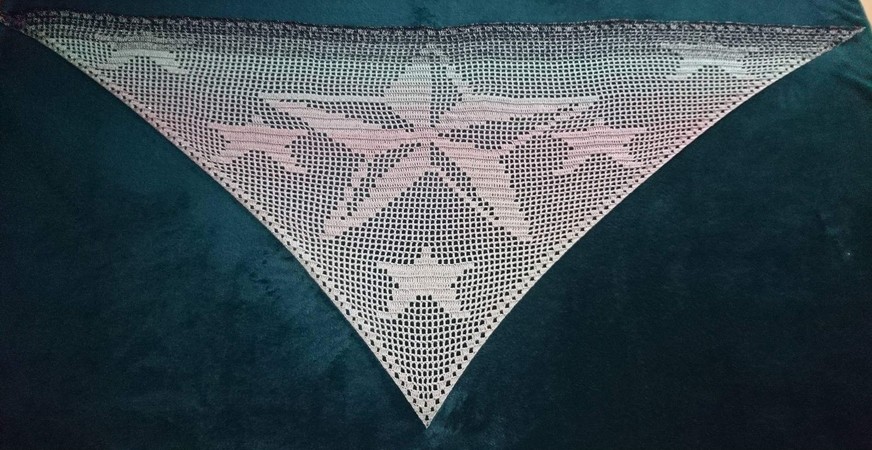 Bei einem 3 fädigen Bobbel und einer Nadelstärke von 3.0 benötigt man je nachdem wie fest oder locker man häkelt ca. 850 m Lauflänge. Das Tuch hat dann ca die Maße 180x75 cm.