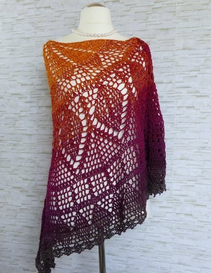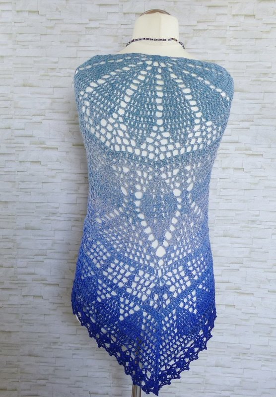 Häkeltücher sind wieder modern, ob als Schultertuch oder dekorativ als Schal. Mit der Farbverlaufswolle (Bobbel) ein Blickfang. Ein einzigartiges Accessoire für sich selbst oder vielleicht auch ein Geschenk für einen lieben Menschen!