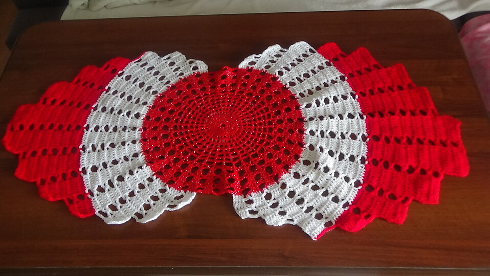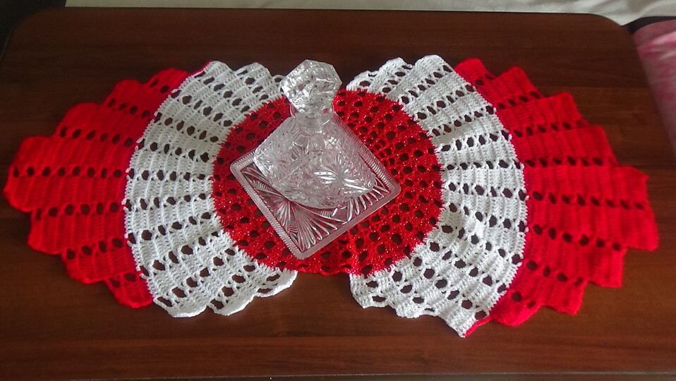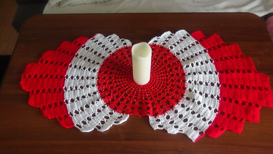 Habe den Tischläufer noch einmal nach meiner Anleitung gehäkelt. Falls Fragen sind einfach eine Nachricht schreiben.