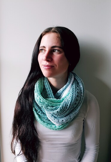 Der Loop ist ein Accessoire, das nicht nur toll aussieht, sondern auch warm hält. Perfekt für einen Frühlingsspaziergang oder einen Stadtbummel. Durch einen sanften Farbverlauf wird der Loop zu etwas ganz besonderem.