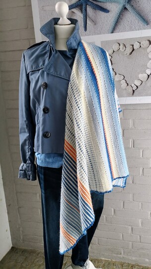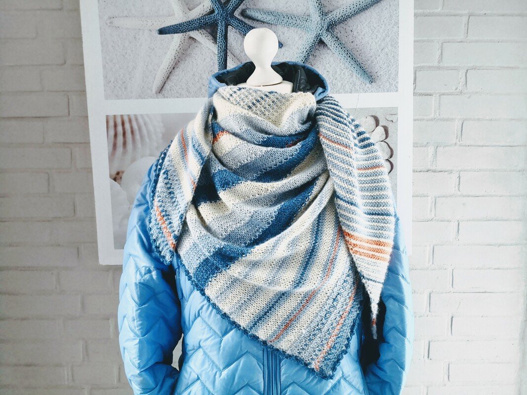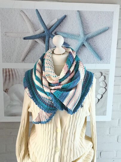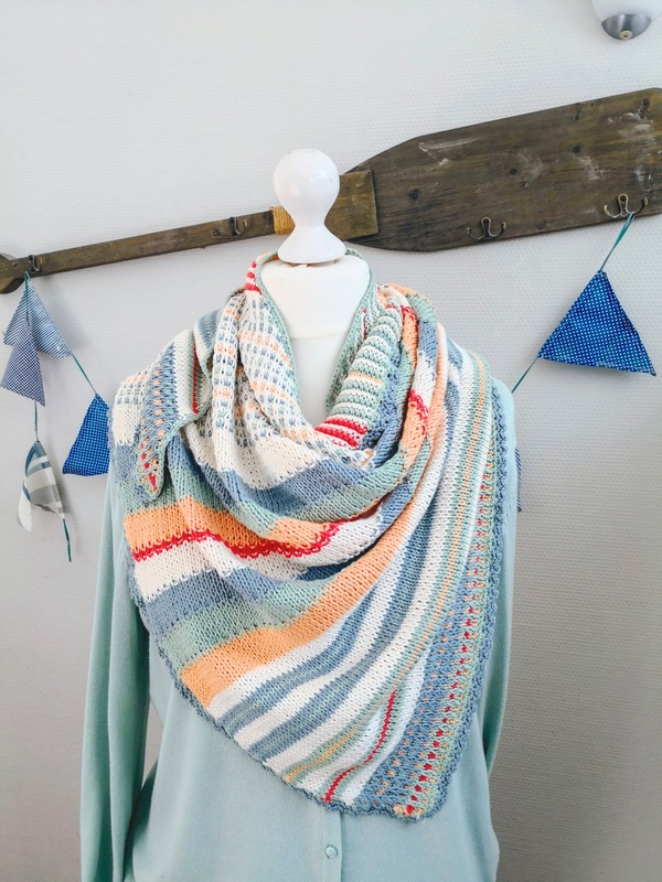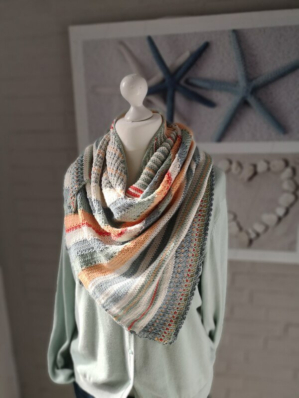 Für Frühling und Sommer kannst du Dir auch eine "SommerLykke" stricken. Die harmonischen Farben und der wunderbare Glanz der LAMANA Cosma machen diese Variante sehr sommerlich. Die beiden Tücher sind gleich gestrickt, nur das Garn ist unterschiedlich.