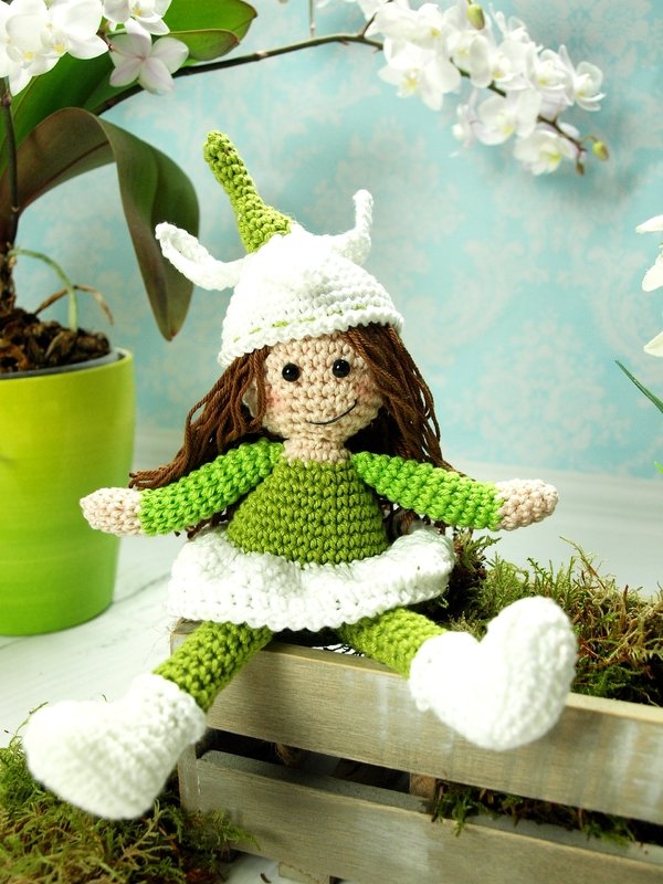 Die Häkelanleitung für Miss Schneeglöckchen umfasst 16 Seiten und ist mit vielen Fotos ausgestattet. Sie enthält eine Schritt-für-Schritt-Erklärung und ist auch für Anfänger gut geeignet.