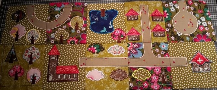 gestickten Blöcke sind 10x10 cm. Mit einer Nahtzugabe von 1 cm solltet ihr also 35