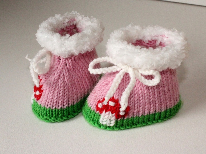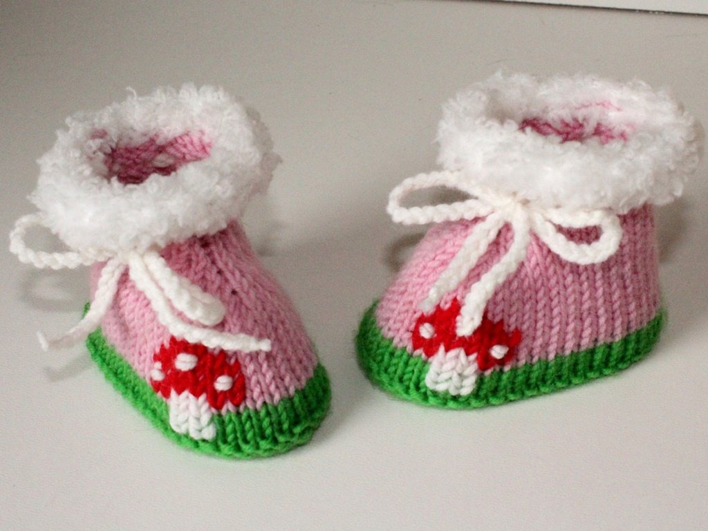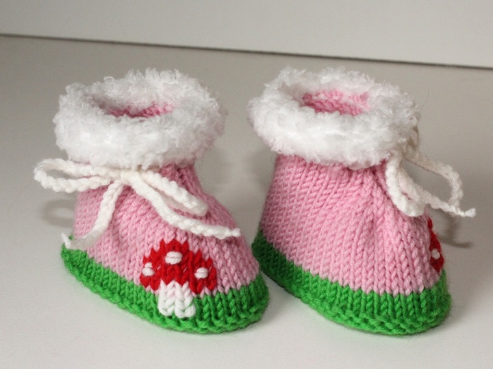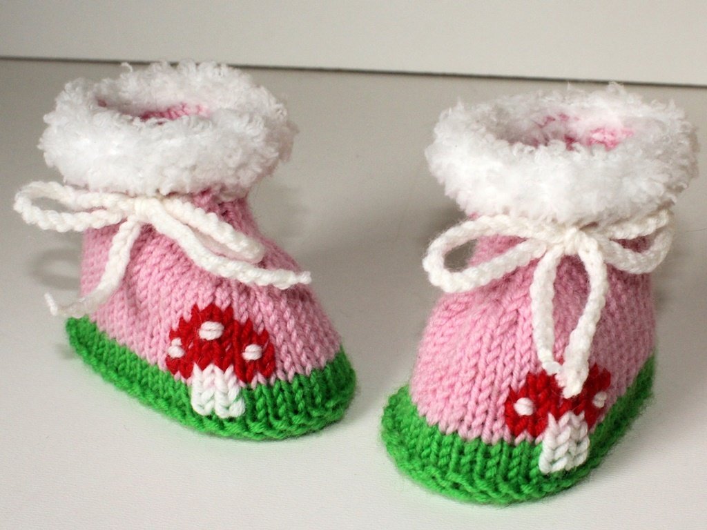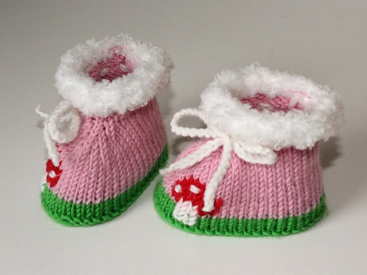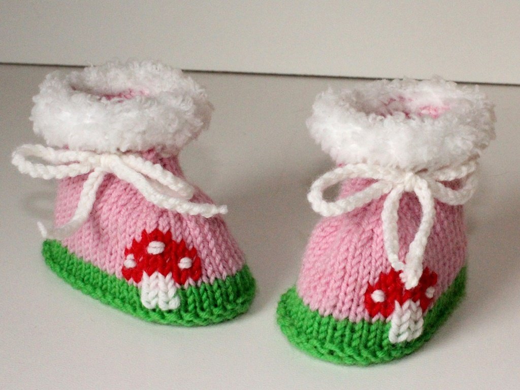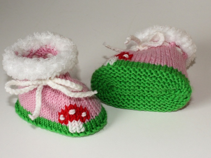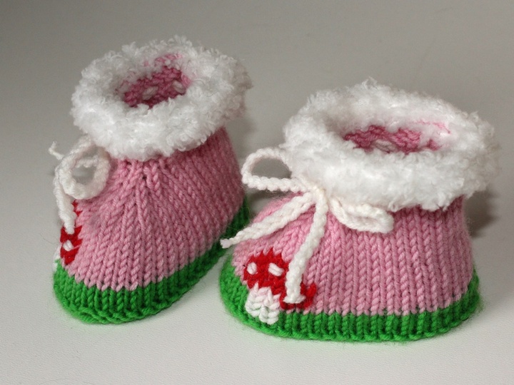 Strickanleitung Babyschuhe, Booties Fliegenpilz, Sohlenlänge 9 cm