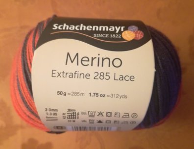 Verarbeitet wurden 300 g Schachenmayr Merino " Extrafine 285 Lace ",
