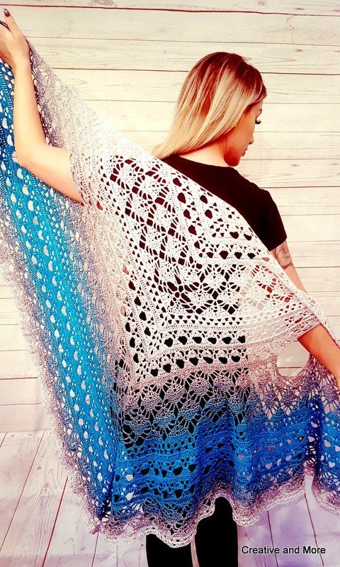 Das Häkeltuch kann so groß/klein gehäkelt werden, wie man es gerne möchte. In meiner Häkelschrift siehst du die ersten 20 Reihen voll aufgezeichnet sowie die nächsten Reihen zu Beginn, da sich ab da nur noch die Spitze ein wenig verändert. Lediglich bei der Spitze des Tuches ändert sich der Rapport ab R23 und wird in dem schriftlichen Teil erwähnt.