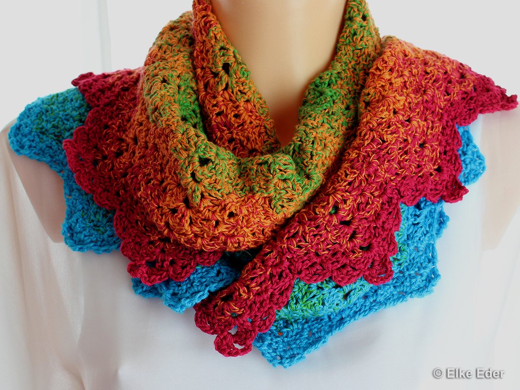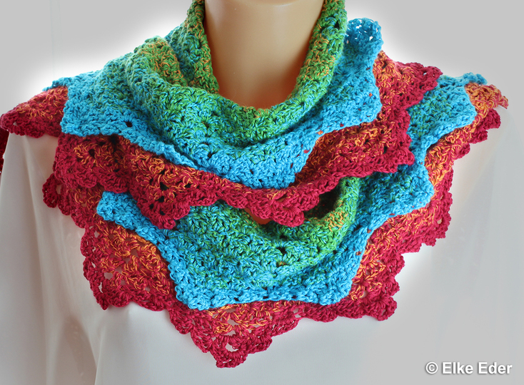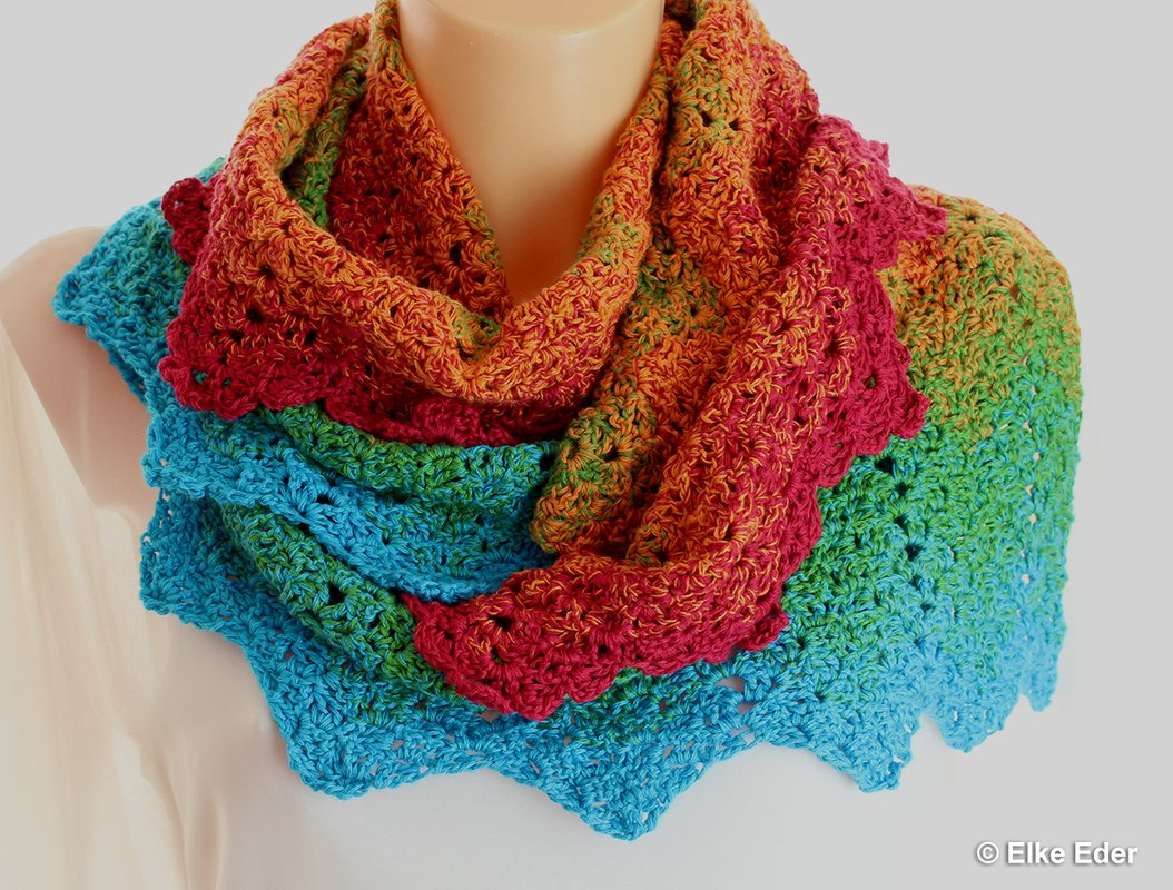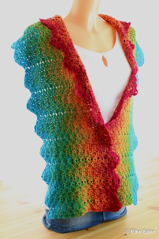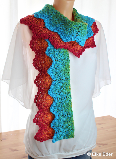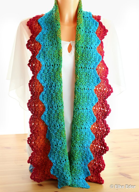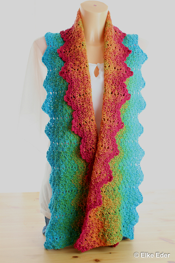 Dieser originelle Schal kommt echt zackig um die Ecke. Das Zackenmuster und insbesondere der Zackenrand, sowie der schöne Farbverlauf machen ihn zu einem besonderen Blickfang.