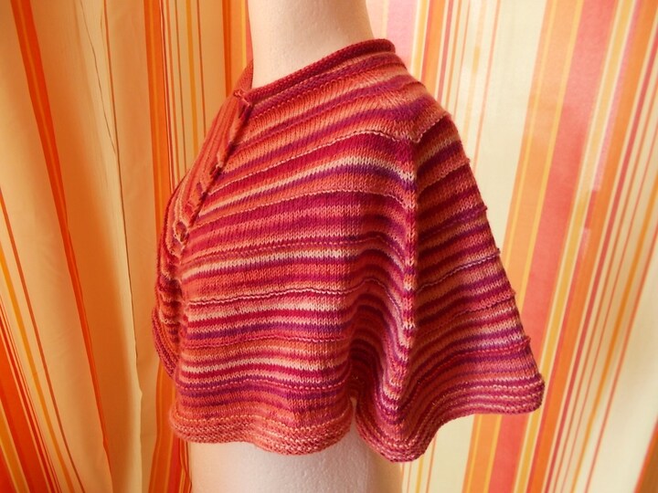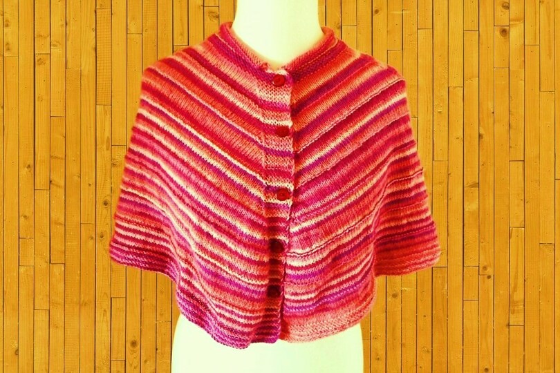 Hier bekommst du eine Strickanleitung für ein Poncho-Cape, das aus 200 g Sockenwolle gestrickt ist.