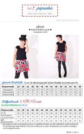 Wie bei allen “leni pepunkt.” Damen Schnitten sind auch hier alle (Einzel-)Größen von 32-58 beinhaltet!