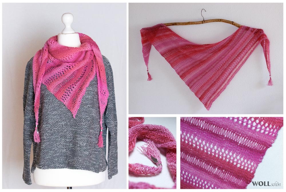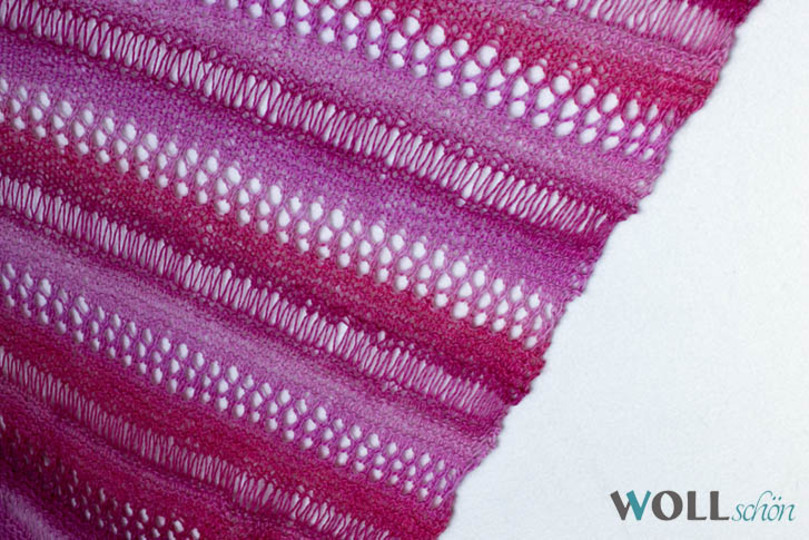 Verwendete Stricktechniken: rechte und linke Maschen, einfache Umschläge, Zunahmen, 2 Maschen zusammenstricken