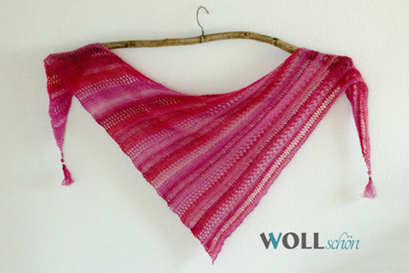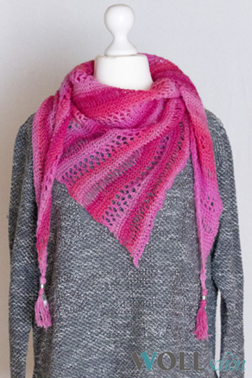 "ALVA" - ein wunderschönes Dreieckstuch, das Dich das ganze Jahr begleiten kann. Getrickt aus kuschelweicher Wolle schmiegt es sich schön an Deinen Hals, um Dich zu wärmen. Durch das Lochmuster ist es dennoch leicht und fein. Als extra Hingucker kommt "ALVA" mit 2 Tasseln daher.