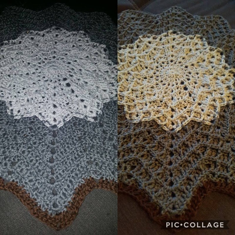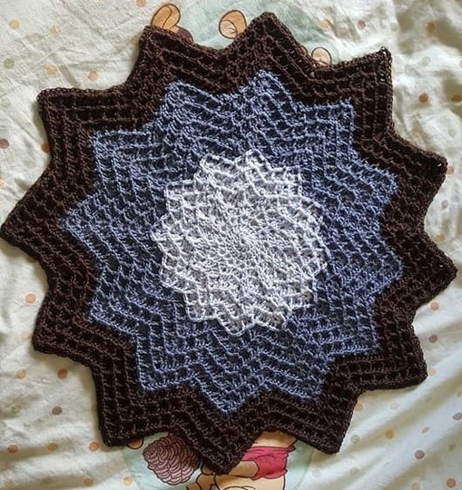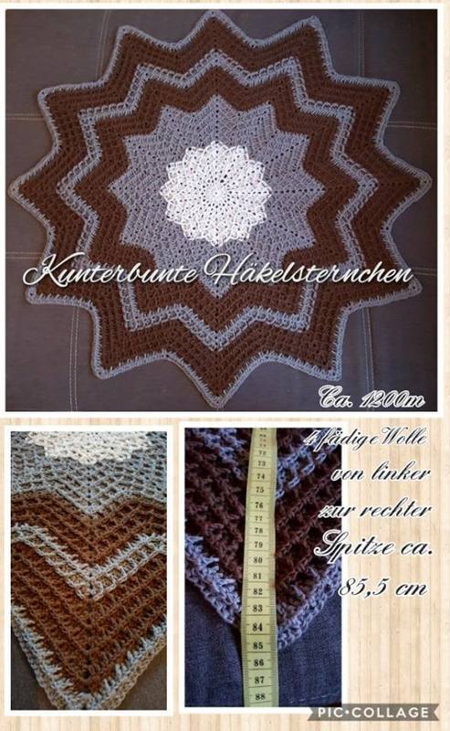 Es handelt sich um eine Sternchendecke mit dem Waffelmuster von Kunterbunte Häkelsternchen.