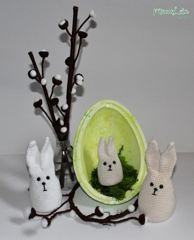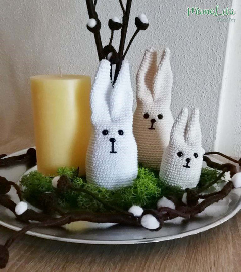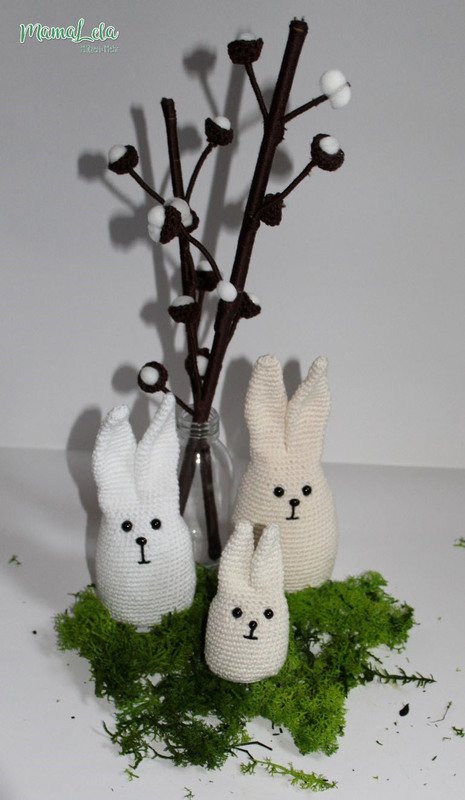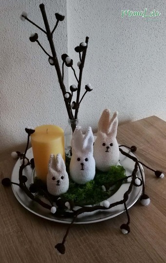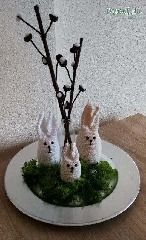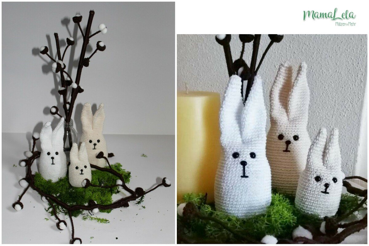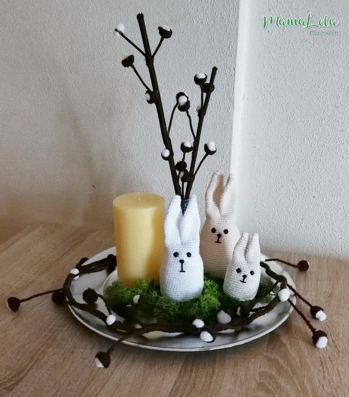 Mit dieser Häkelanleitung könnt ihr euch die im Artikelbild gezeigten Hasen samt der Weidenkätzchen zaubern.