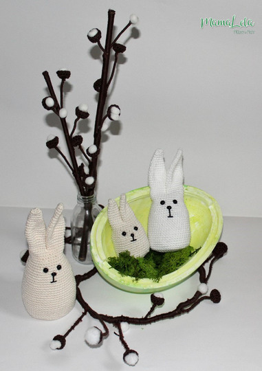 Mit den angegebenen Materialien werden die Häschen ca. 8-16 cm groß.