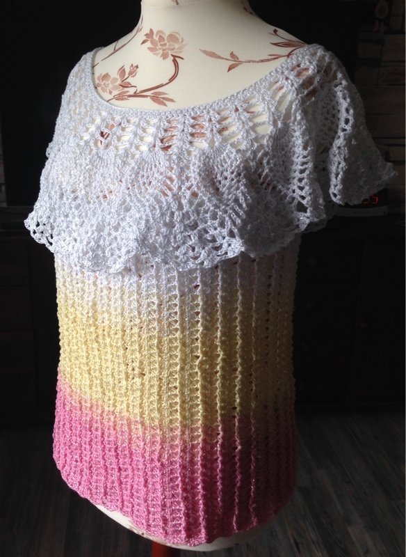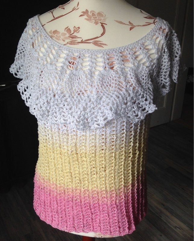 Mein "Eisbecher-Top" eine luftig leichtes Oberteil für hoffentlich viele warme Sonnentage! Ein 3-fädiges Garn mit begleitendem Lurexfaden. Von Eisdiele bis Urlaubskoffer geeignet.