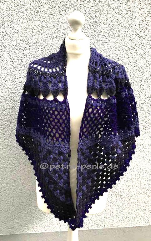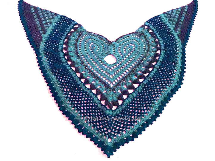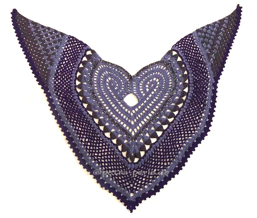 Diese Tuch beginnt mit einem großen Häkelherz in der Mitte und ist recht einfach nach zu machen.