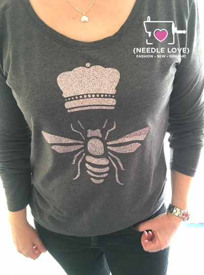 Deine veredelten Produkte mit unserer Datei BEE QUEEN kannst du gerne in Social-Media-Kanälen unter Angabe des Firmennamens {NEEDLE LOVE} und der Datei veröffentlichen.