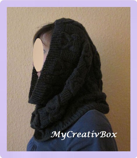 eine PDF-Datei mit der Strickanleitung für diesen kuschligen Loop, der auch als Kapuze getragen werden kann.
