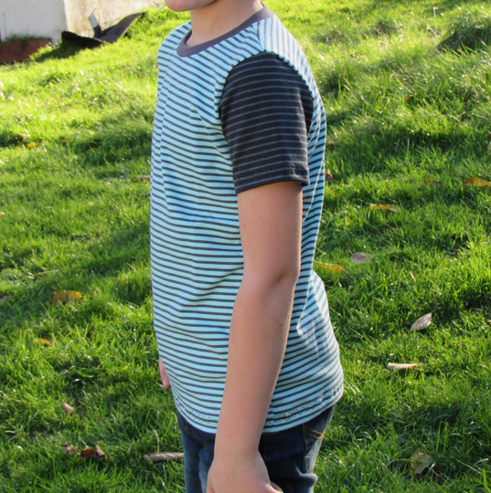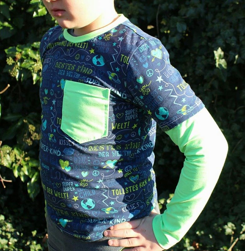 Hier kann beliebig kombiniert werden, da es bei jeder Variante jeweils ein vorderes und ein hinteres Shirt gibt, sodass angesetzte Ärmel und Raglanärmel auch kombiniert werden können. So ergibt sich eine raffinierte, cool aussehende Unterteilung.