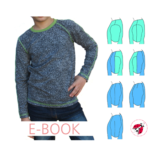 Schneidere Dir Dein Shirt, wie es Dir gefällt! Dieser tolle Baukasten enthält ein Shirt mit Raglanärmeln und eins mit „normalen“ angesetzten Ärmeln.