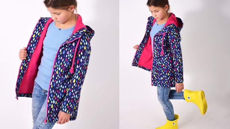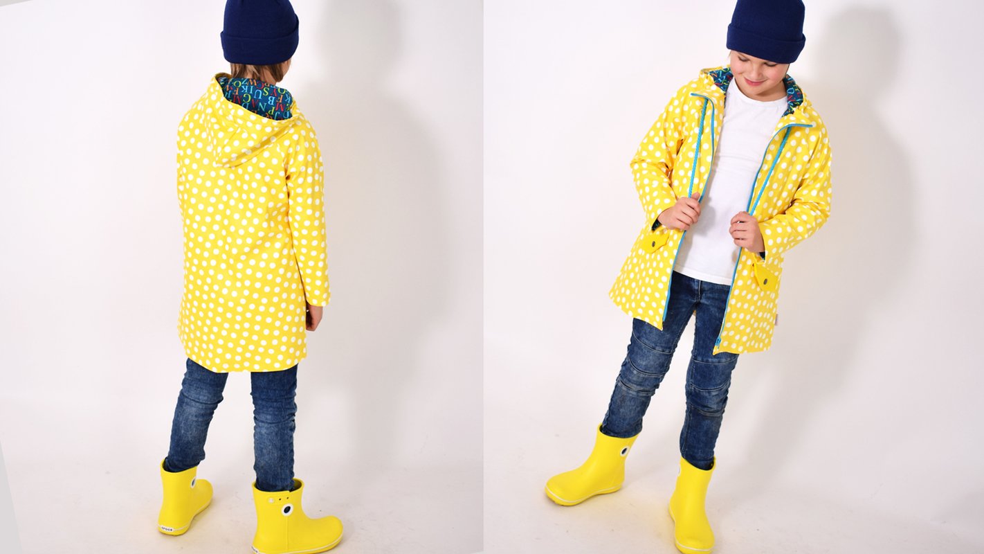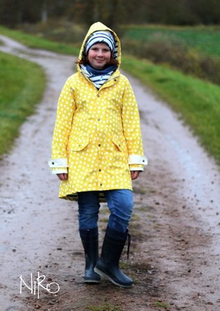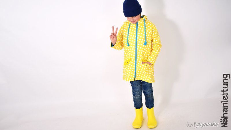 Die Friesen.liebe4kids ist ein klassischer Regenmantel für Kinder, der sehr einfach genäht ist und nur für den Einsatz der Knöpfe, Reißverschlüsse und Ösen etwas Geduld erfordert. Sie kann mit Riegeln an den Ärmeln versehen werden, mit einer Kordel durch die Kapuze und mit einer (Gummi-)kordel durch den Saum. Es kann eine Leiste angebracht werden, die den Reißverschluss verdeckt - und (klar!) können auch sämtliche Nähte mit einem Nahtband versehen werden, um die neue Lieblingsjacke so richtig regenfest zu machen! All das kann - nichts muss.