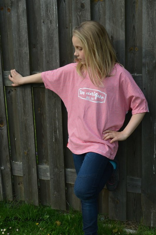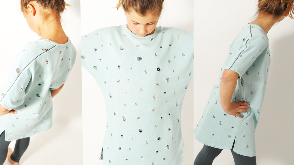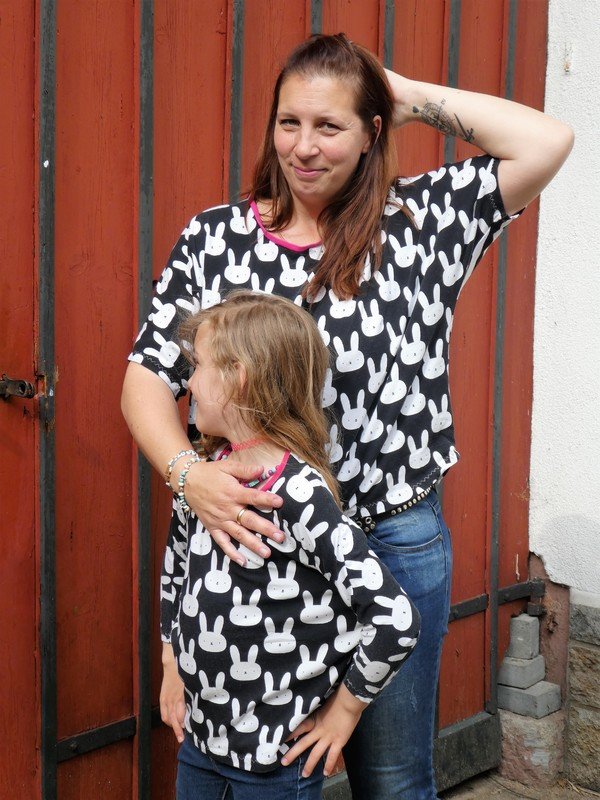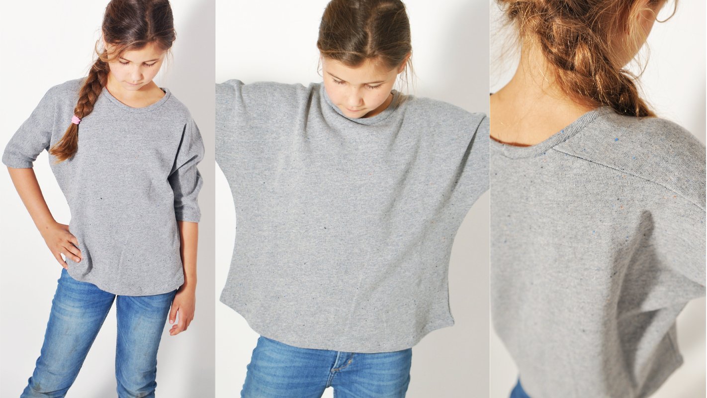 In der „normalen“ Form ist das BAT.shirt4Teenies sehr kastig. Zusätzlich haben wir noch eine engere Variante eingebaut und eine lange Kleid-Variante des Shirts ist auch noch dabei, die in der engeren Variante super aus Sweat ist oder in der weiten Variante perfekt für ein locker-leichtes Strandkleid aus leicht fließender Viskose, Batist o.ä. geeignet ist.